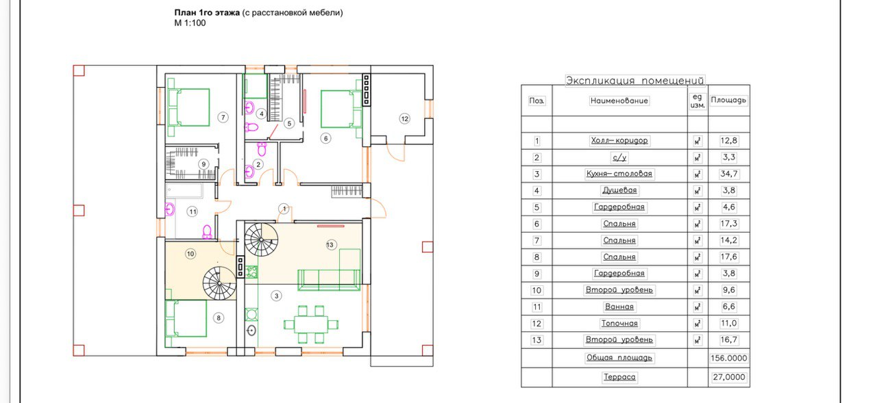 (санузел, гардеробная, спальная зона)